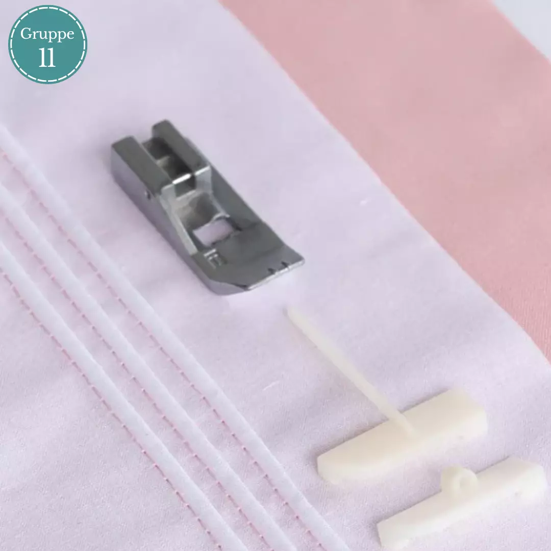 Trykkfot med to ulike guider som gjør det enkelt å sy biser.