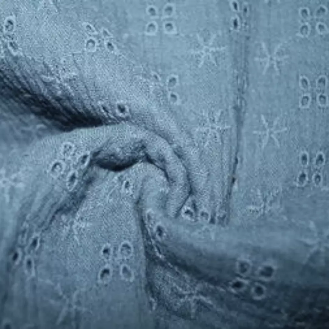 Fast bomullstoff i musselin og broderi vev. Perfekt til å sy sommerklær av!