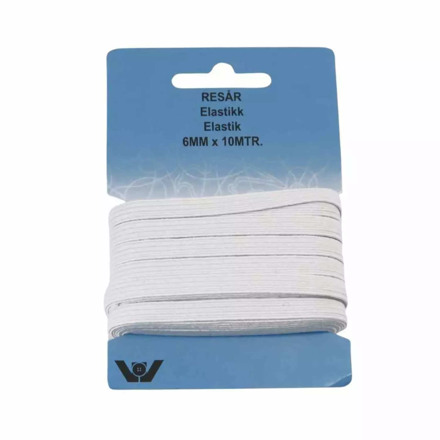 Pakke med hvit strikk. Ofte kjent som buksestrikk, men kan selvsagt brukes til andre ting.