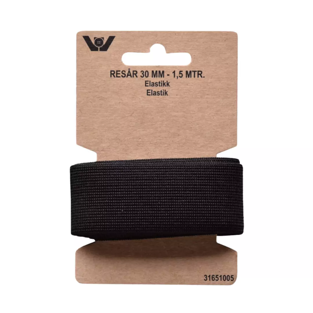 Elastikk – Sort – 30mm – 1,5 mtr