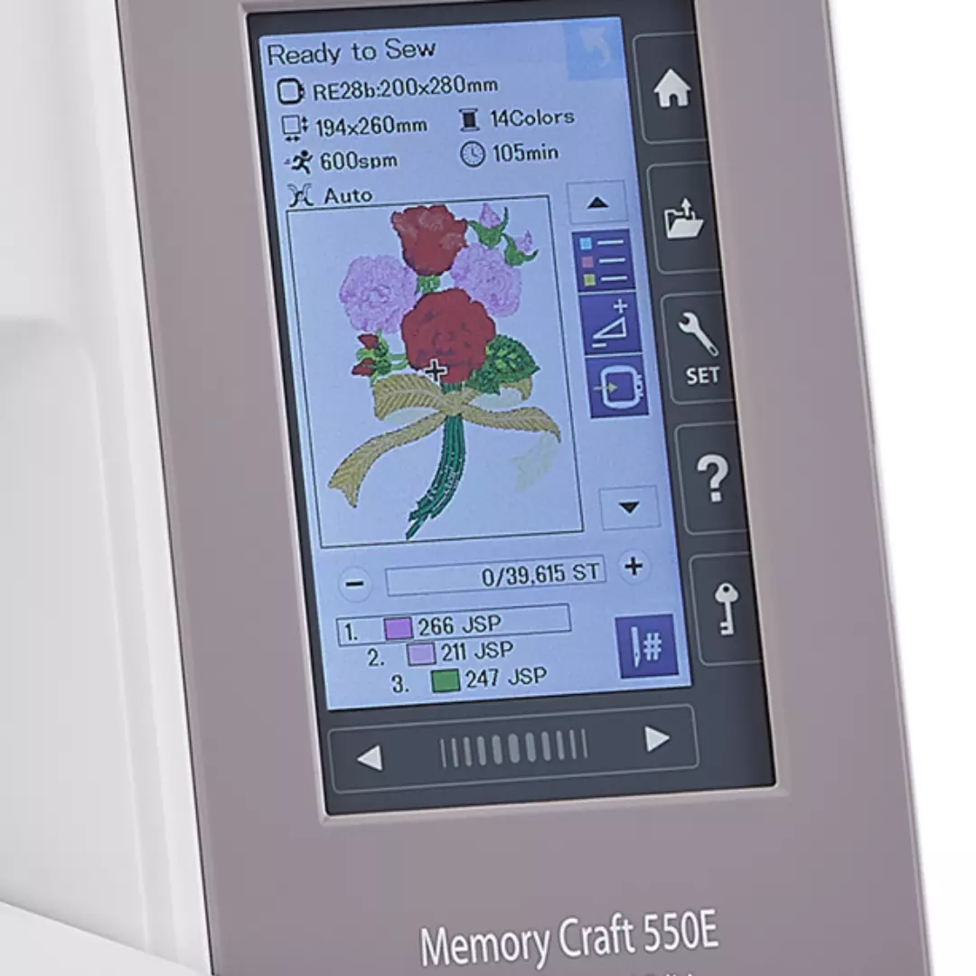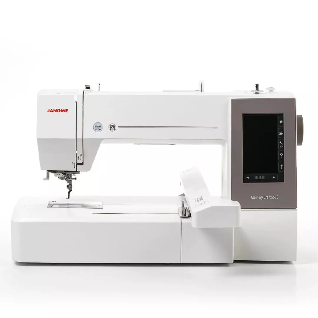 Memory Craft 550E er en kompakt og fullt utstyrt broderimaskin som gir deg muligheten til å importere design via USB-minne, har unike redigeringsfunksjoner, en rask mikroprosessor og et automatisk trådklippsystem.