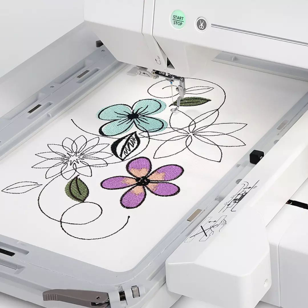 Med denne broderimaskinen kan du bruke innebygde mønstre, kjøpe design eller lage dine egne broderier!