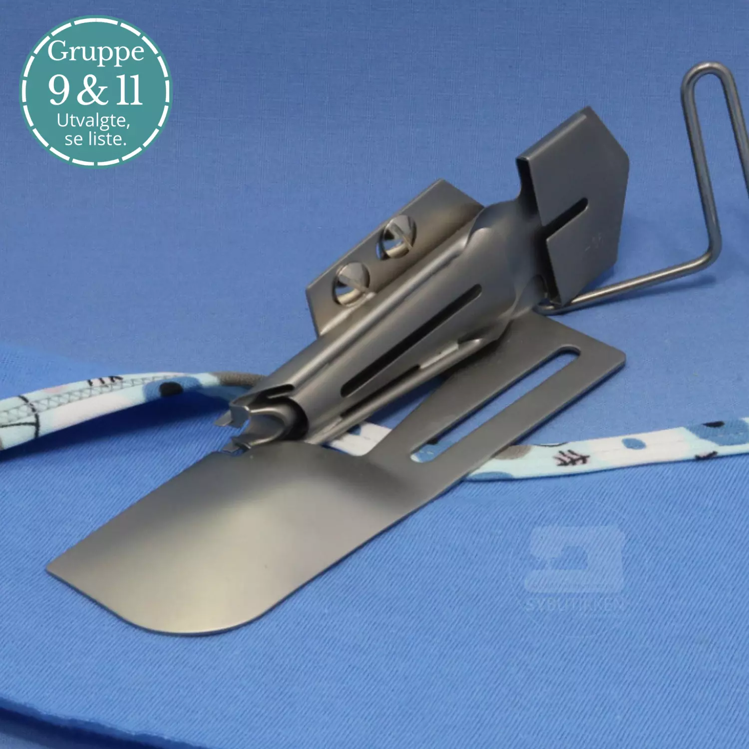 Bretter kantbåndet fire ganger og syr det fast i én enkel operasjon i elastiske stoffer. Remsen klippes ut med 42 mm bredde.