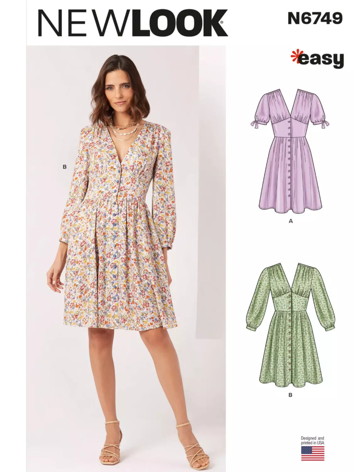 Symønster på Kjole med knappåpning, med kort eller lang erme. Fin markering av midje og skjørt med vidde.