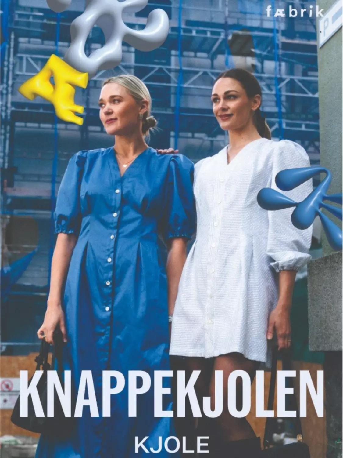 Knappekjolen har v-utringning og knappestolpe langs midten foran. Den har t-skjorteermer med puff som du kan sette strikk i nederst. I midjen er det markeringer for legg mot hverandre.