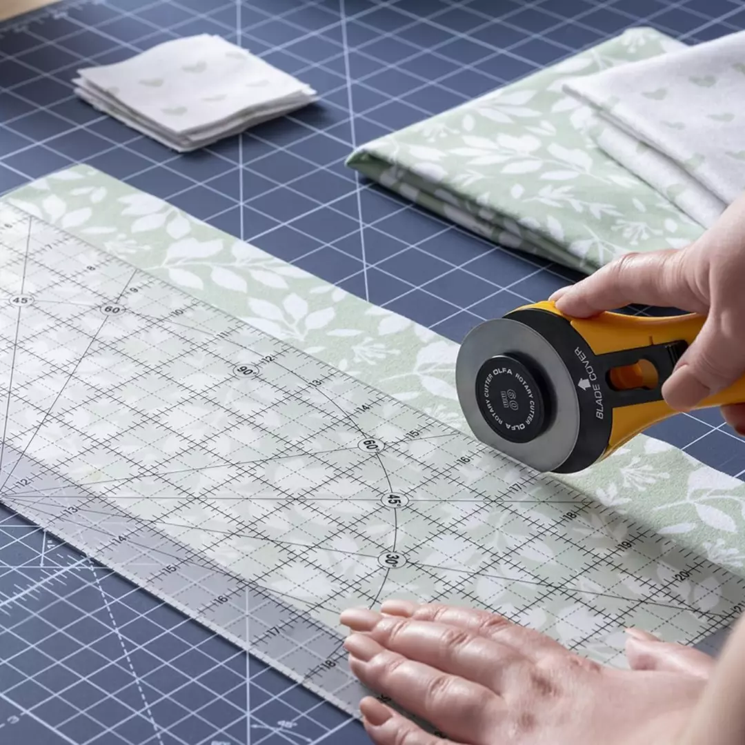 ALLSIDIG: Linjalen er designet for sy- og quilteprosjekter. Den er perfekt for stoff- og papirlaging, patchwork, ferdige blokker, border, bindinger og mer. Den ble designet for både høyre- og venstrehendte brukere.
