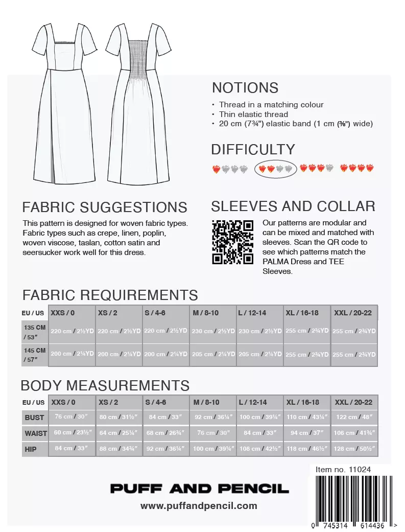 Dette mønsteret er designet for vevde stoffer. Stofftyper som krepp, lin, poplin, bomull, vevd viskose og lignende.