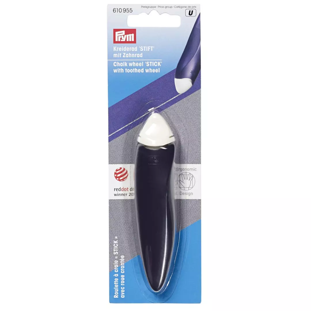 Prym Ergonomics Kritthjul Stift med taggehjul er et verktøy for nøyaktig merking av stoff. Dette ergonomisk utformede verktøyet gir jevn og presis påføring av kritt, noe som gjør det ideelt for både nybegynnere og erfarne syere.