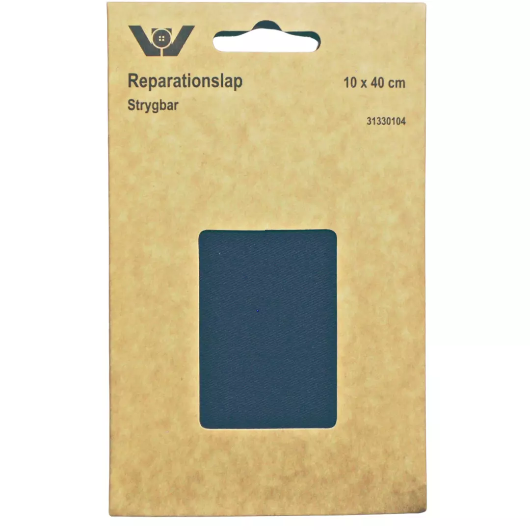 Reparasjonslapp i bomull som kan strykes på. Klipp til den størrelsen du ønsker. Bruksanvisning følger bak på pakken.