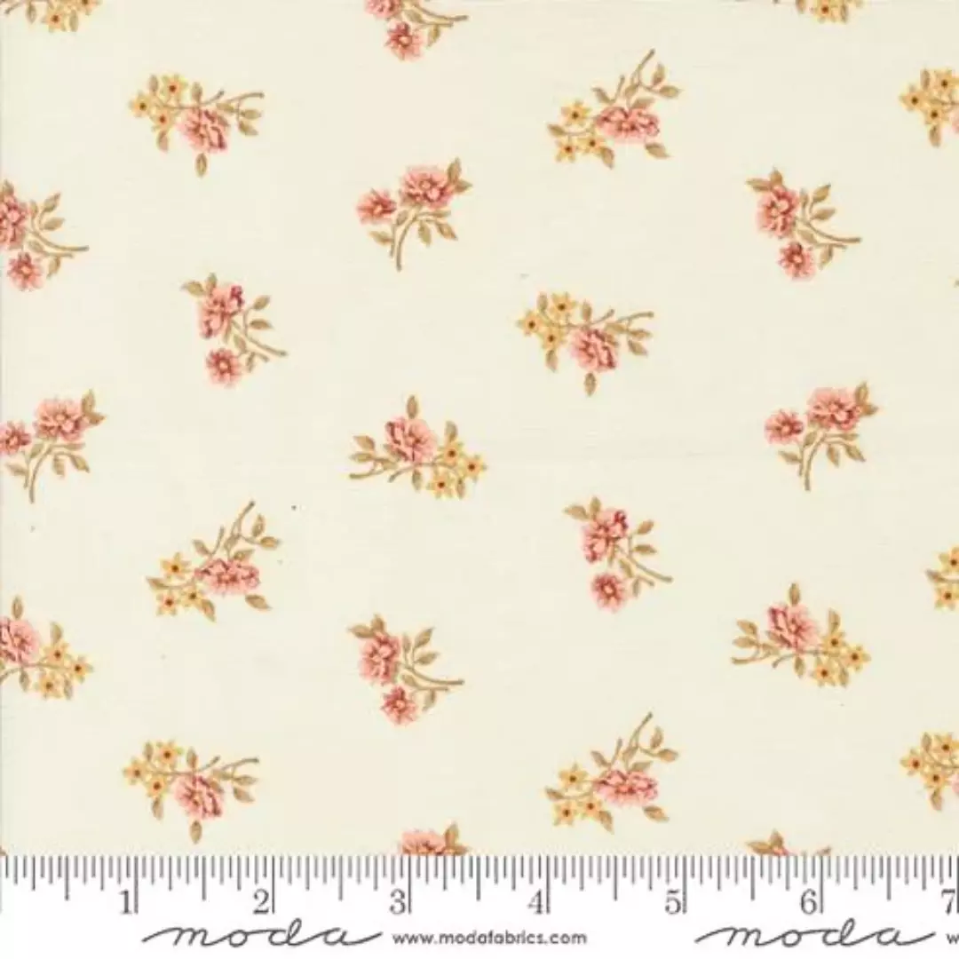 Off-white/kremfarget bomullstoff med print av blomster.